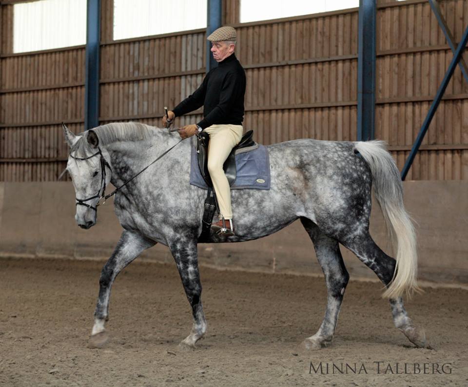 Tässä kuvassa eversti Carde on ensin pyytänyt hevosta asettumaan. Lisäämällä sen jälkeen hieman aktiivisuutta tahdin ja joustavan tuntuman säilyttäen hän on saanut hevosen ojentautumaan hyödylliseen kurkotukseen kohti kuolainta. Kuvan hevonen on C’s Ramona, kuva Minna Tallberg.