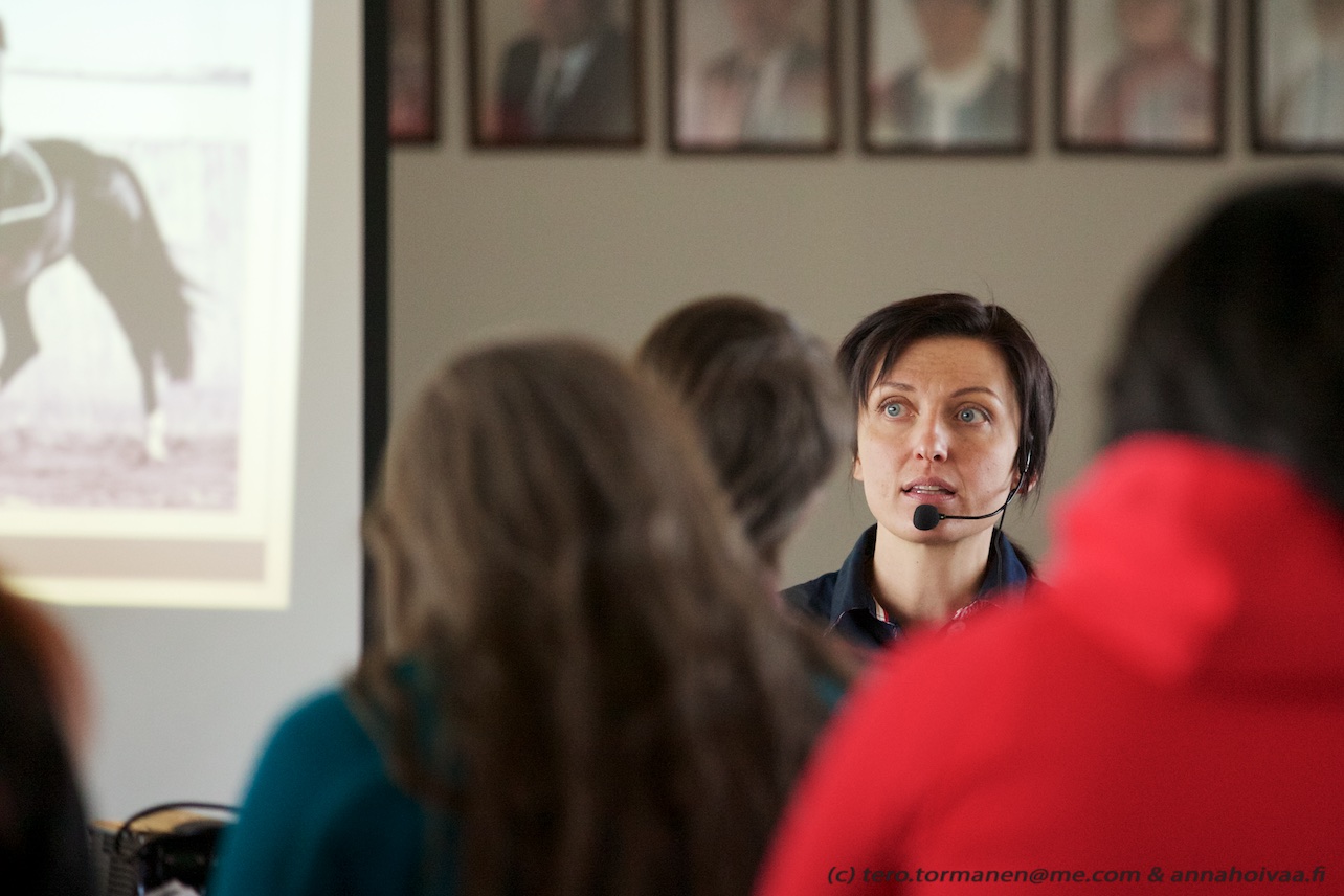 Olen ollut hyvin tyytyväinen koulutuksemme rakenteeseen. Teoriaosuudessa ehtii valottaa melko laajasti ratsun koulutuksen taustalla vaikuttavia ilmiöitä ja sen jälkeen demonstraatioissa nähtyjä harjoitteita ja painotuksia on uskoakseni helpompi ymmärtää. Ilman käytännön osuutta pelkkä teoria puolestaan voi jäädä avautumatta, käytännön harjoitteissa saa edes hiukan tuntumaa siihen,